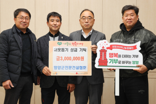 양양군전문건설협회(대표:강문권)는 28일 양양군청을 방문해 탁동수 양양군수권한대행에게 이웃돕기성금 300만원을 기탁했다.