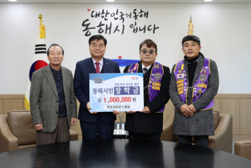 묵호라이온스클럽(회장:남태승)도 이날 지역인재 양성을 위해 동해시민장학재단에 장학금 100만원을 기탁했다. 기탁된 장학금은 지역 학생들이 학업에 전념하고 꿈을 키워갈 수 있도록 지원될 예정이다.