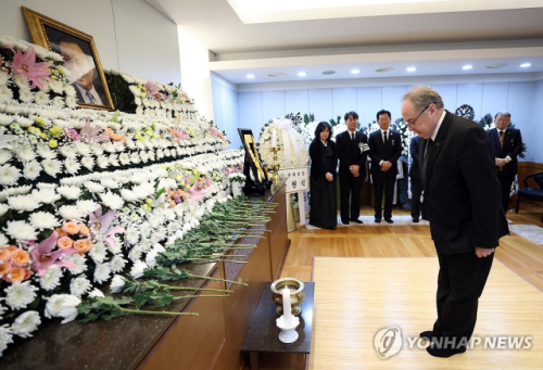 제임스 헬러 주한 미국대사대리, 제프 로빈슨 주한 호주대사가 각각 빈소를 찾아 고인의 편안한 영면을 기원했다. 로빈슨 대사는 방명록에 이름을 쓰며 '주한 호주대사'라고 한글로 직함을 적어 눈길을 끌었다.