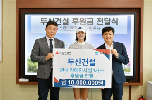 【원주】두산건설이 지난 28일 원주시에서 장애인복지시설 지원을 위한 기부금 1,000만원을 전달하며 지역사회를 위한 나눔을 실천했다.