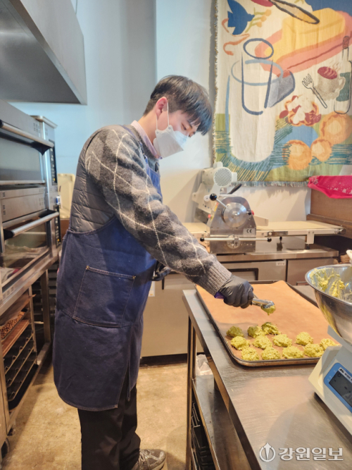 박채영 춘천 신촌리 빵집 카페 사장은 “커피와 빵을 판매하다 두쫀쿠 열풍을 접하고 오후 자투리 시간을 활용해 만들기 시작했다”며 “매일 300개를 만들다 보니 가게 문을 닫은 뒤에도 작업을 이어갈 때가 많지만 두쫀쿠 덕분에 매출이 2배 이상 늘고 단골손님도 많아져 기쁜 마음으로 일하고 있다”고 환하게 웃었다.