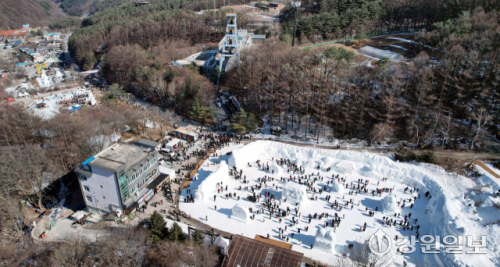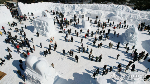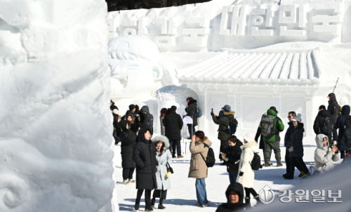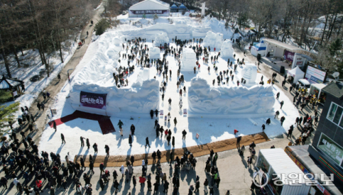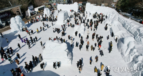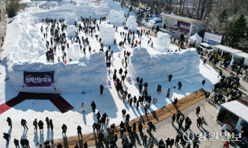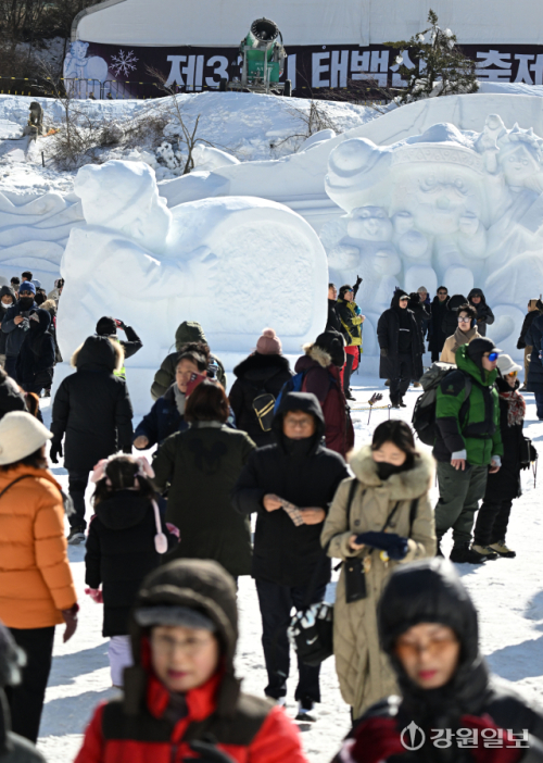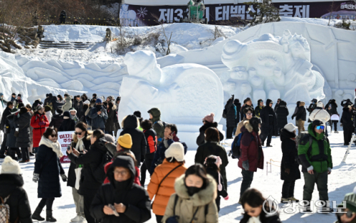 제 33회 태백산 눈축제 가 지난달 31일 태백시 태백산국립공원 일원에서 개막한 가운데 축제를 즐기는 관광객들로 축제장이 북적이고 있다. 태백=박승선기자