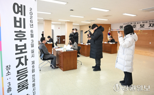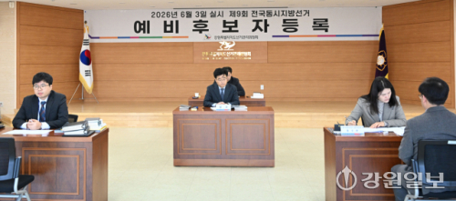 6·3 제9회 전국동시지방선거를 120일 앞두고 광역자치단체장과 교육감 선거 예비후보자 등록이 시작된 3일 강원자치도선거관리위원회에서 직원들이 예비후보 등록 접수를 받고 있다.