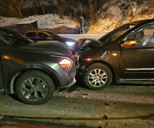 지난 3일 오후 8시25분께 원주시 태장동의 한 도로에서 50대 A씨가 몰던 스포티지와 40대 B씨가 몰던 카니발이가 부딪쳤다.