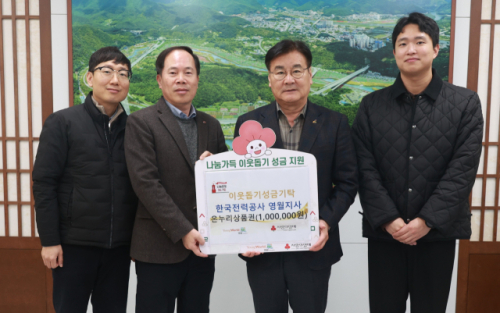 한국전력공사 영월지사(지사장:노형권)는 지난 3일 군청에서 최명서 군수에게 온누리상품권 100만원을 기탁했다.
