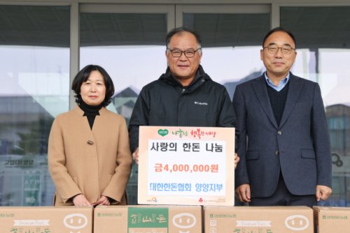 대한한돈협회 양양지부(지부장:김남식)는 4일 양양군청을 찾아 탁동수 양양군수권한대행에게 400만원 상당의 이웃돕기물품 한돈(돼지고기)을 기탁했다.
