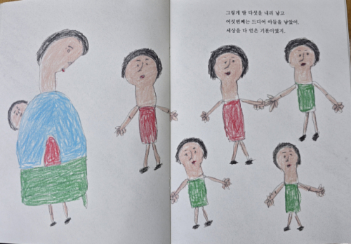 ‘딸 다섯을 내리 낳고 여섯 번째는 드디어 아들을 낳았어. 세상을 다 얻은 기분이었지. 딸 많이 낳았다고 구박도 참 많이 받았는데 딸이 여섯이나 있으니 이제는 사람들이 나를 제일 부러워해. 오래 살고 볼일이야.’