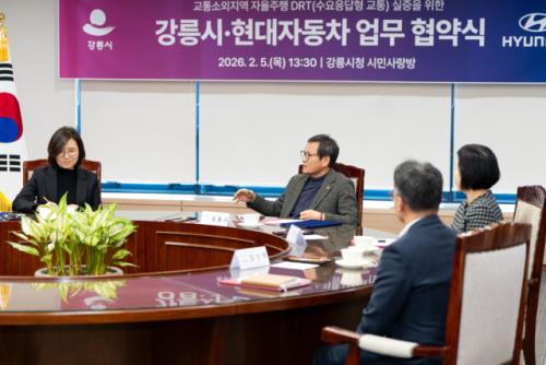 강릉시는 5일 시청 시민사랑방에서 현대자동차와 ‘교통소외지역 자율주행 DRT 실증’을 위한 업무협약을 체결했다.