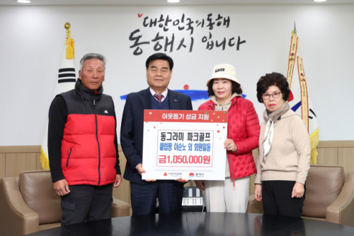 동그라미 파크골프(클럽짱:이순노)는 5일 동해시청을 방문, 취약계층을 돕기 위해 회원들이 떡국떡을 판매해 마련한 수익금으로 이웃돕기 성금 105만원을 기탁했다.