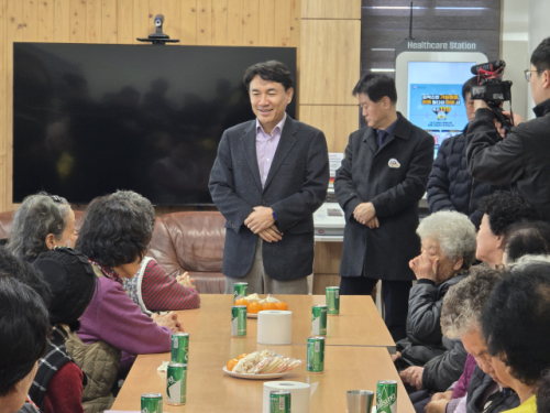김 지사는 곧바로 남면 양덕원1리 경로당을 방문해 주민들을 만났다.