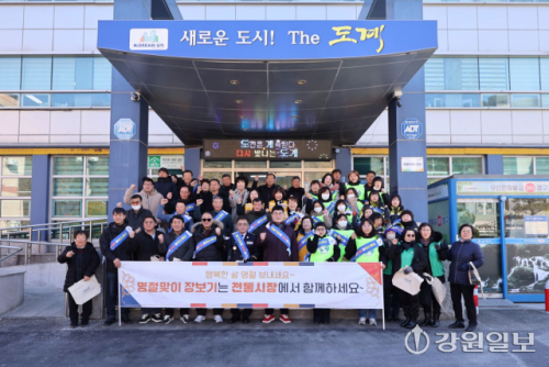 박상수 시장과 도계지역 사회단체들은 9일 도계 5일장터에서 제수용품을 구입하며 설맞이 전통시장 이용하기 캠페인을 전개했다.