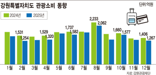 지난해 강원특별자치도를 찾은 관광객이 역대 최다를 기록했지만 관광 소비는 오히려 줄어든 것으로 나타났다.