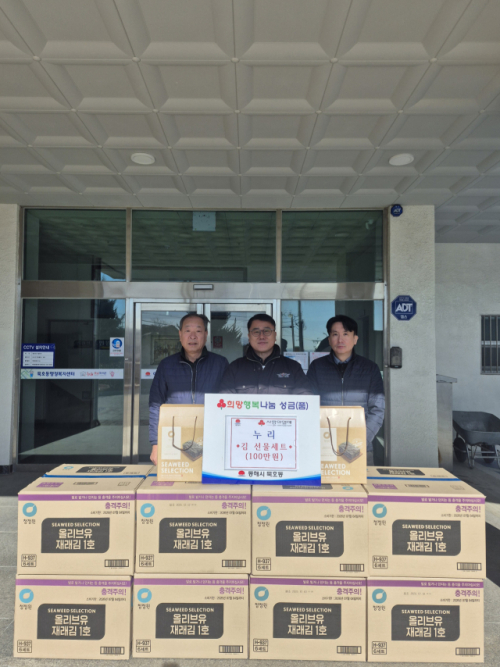 동호동 소재 업체 누리(대표:진종은, 황지혜)는 김 선물세트 50개(100만원 상당)를 기탁했으며, 앞서 지난 6일에는 동호동에 사골곰탕 즉석국을 전달해 취약계층 100가구에 따뜻한 한 끼를 전했다.