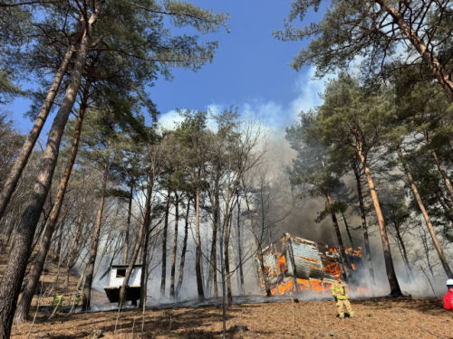 산림·소방당국은 인력 128명, 장비 43대, 헬기 10대 등을 투입해 이날 낮 12시37분께 주불을 잡았다.