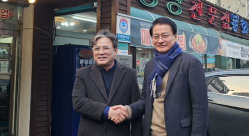 두 입지자는 12일 오전 7시30분 시내 한 음식점에서 지역 상생발전 방안에 대해 의견을 나눴다. 이날 회동은 최혁진(비례·무소속) 국회의원의 주선으로 전격 성사됐다.