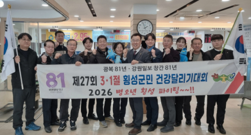 ◇MG횡성중앙새마을금고 송국현 이사장과 임직원들은 지난 13일 금고 창구에서 오는 3월1일 치러지는 제107주년 3·1절기념 제27회 횡성군민건강달리기대회 참가와 고객을 위한 책임경영을 다짐하며 파이팅을 외쳤다.