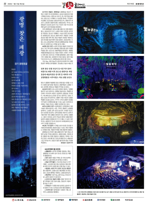 한국편집기자협회는 12일 신현지 차장의 ‘광명 찾은 폐광’ 등 5편을 선정했다고 밝혔다. 문화스포츠부문 수상작인 ‘광명찾은 폐광’은 본보 1월13일자 22면 수록된 ‘팔도 핫 플레이스’ 지면이다. 수상작은 어둠의 산업유산이 ‘빛의 공간’으로 재탄생하는 주제를 좌측 대형 타이틀→중앙 정보 서사→우측 사진 배열의 명확한 동선으로 일치시키고 색채와 이미지 배치를 통해 메시지와 가독성, 현장감을 동시에 구현해 편집 완성도를 높였다는 평이다. 시상식 일정은 추후 공지될 예정이다.
