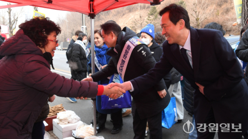 우 전 수석과 시장 모든 노점을 함께 찾으며 새해 인사를 나눈 허영 의원은 "민주당 강원도지사 선거 후보 우상호 전 수석 아시죠?"라고 일일이 소개하는 등 전폭적인 지원사격을 펼쳤다. 두 사람은 상인을 비롯해 아침 산책을 나서는 행인들과도 따뜻한 새해 인사와 건강 관리를 당부하며 훈훈한 설날 분위기를 연출했다.