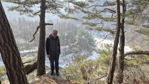 견인차가 가까스로 차를 끌어냈다. 경사로를 다시 오를 엄두가 안나 차는 산 아래 세워두고 그의 안내를 받아 함께 능선 쪽으로 걸어 올라갔다. 능선을 따라 완만하게 펼쳐진 평지와 그 아래로 이어지는 골짜기, 겨울 햇살을 받은 숲의 윤곽이 또렷했다. 그가 왜 이곳을 삶의 터전으로 삼았는지 짐작이 가는 절경이었다. 이곳이 본래 약속장소이자 그가 가꾸는 3만여 평 숲, ‘심심림(心心林)’이다.
