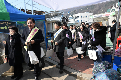 【평창】평창군은 지난 13일 설 명절을 앞두고 진부전통시장에서 ‘설 명절맞이 전통시장 장보기 행사’를 개최했다.