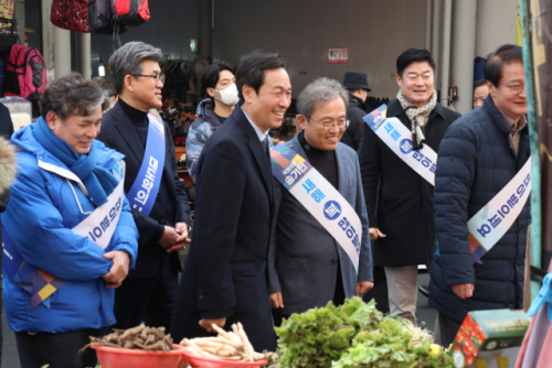6·3지방선거 도지사 선거 출마 유력주자인 우상호 전 청와대 정무수석과 더불어민주당 원주 갑·을 지역위원회가 설 명절을 맞아 세밑 풀뿌리 민심을 직접 체감하고 소상공인 목소리를 경청했다.