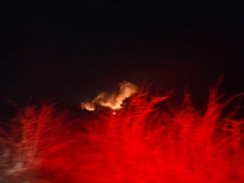 22일 오후 7시 22분께 강원 고성군 토성면 인흥리에서 산불이 나 산림 당국이 진화하고 있다.