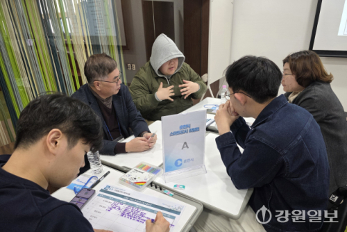 ■도시 문제, 시민 손으로=지난 주말 춘천 커먼즈필드 세미나실이 왁자지껄해졌다. "주차 불편으로 가까운 거리도 차를 몰게 되네요". 이 한 마디에 함께 토의하던 조원들이 공유 주차장, 보행자 연동 스마트 횡단보도, 버스 혼잡도 정보 제공 등의 아이디어를 쏟아냈다.