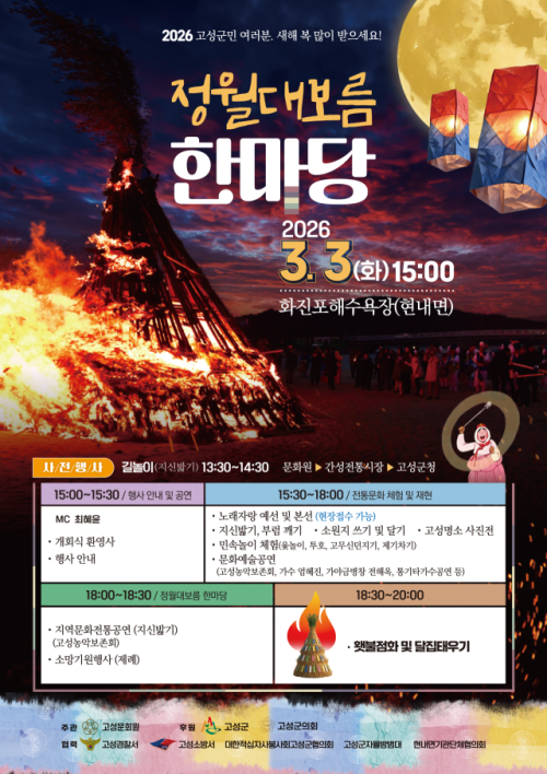 고성문화원 관계자는 “이번 행사를 통해 모두가 한마음으로 소망을 나누고 지역 공동체 결속을 다지는 뜻깊은 시간이 되길 바란다”며 “안전관리에도 빈틈없이 대응해 안심하고 참여할 수 있도록 철저히 준비하겠다”고 말했다.