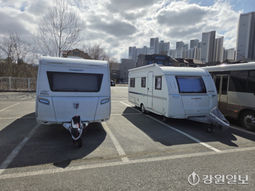 지역 주민들은 불편을 호소했다. 원주시민 박모(58)씨는 “무료 주차장이다 보니 타지역에서 온 사람들이 카라반이나 캠핑카를 장기 주차해 불편은 물론 미관까지 해친다”고 말했다. 캠핑카 차주 한모(42)씨는 “아파트 주차장이나 도로변 주차가 어려워 공용 주차장에 세울 수밖에 없다”고 토로했다.