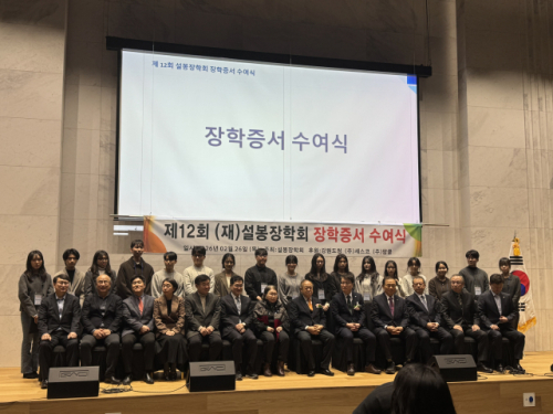 (재)설봉장학회는 26일 서울 강동구 세스코멤버스시티에서 제12회 설봉장학회 장학증서 수여식을 열고 장학금을 수여했다.