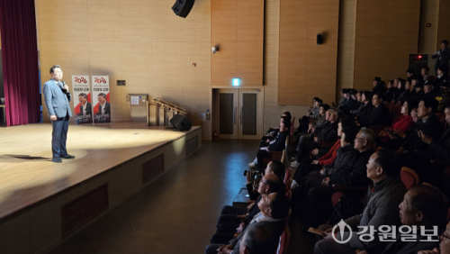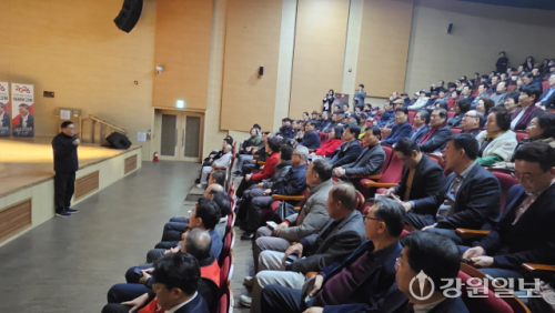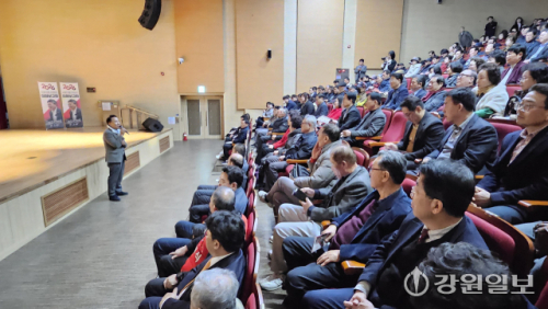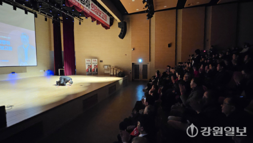 이날 의정보고회에는 김진태 지사와 원강수 시장, 염동열·안재윤 도지사선거 예비후보, 함종한 전 도지사, 시도의원, 당원, 지지자 등 300여명이 참석했다.