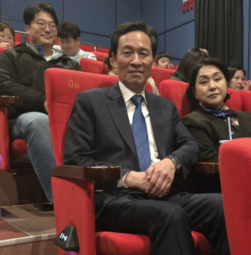 6·3지선을 앞두고 더불어민주당 강원 지사 후보로 단수 공천을 받은 우상호 전 청와대 정무수석이 28일 영월을 찾아 영화 ‘왕과 사는 남자’를 관람했다.