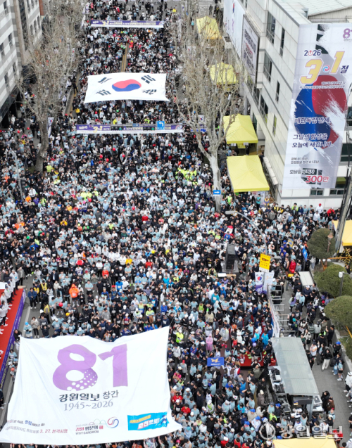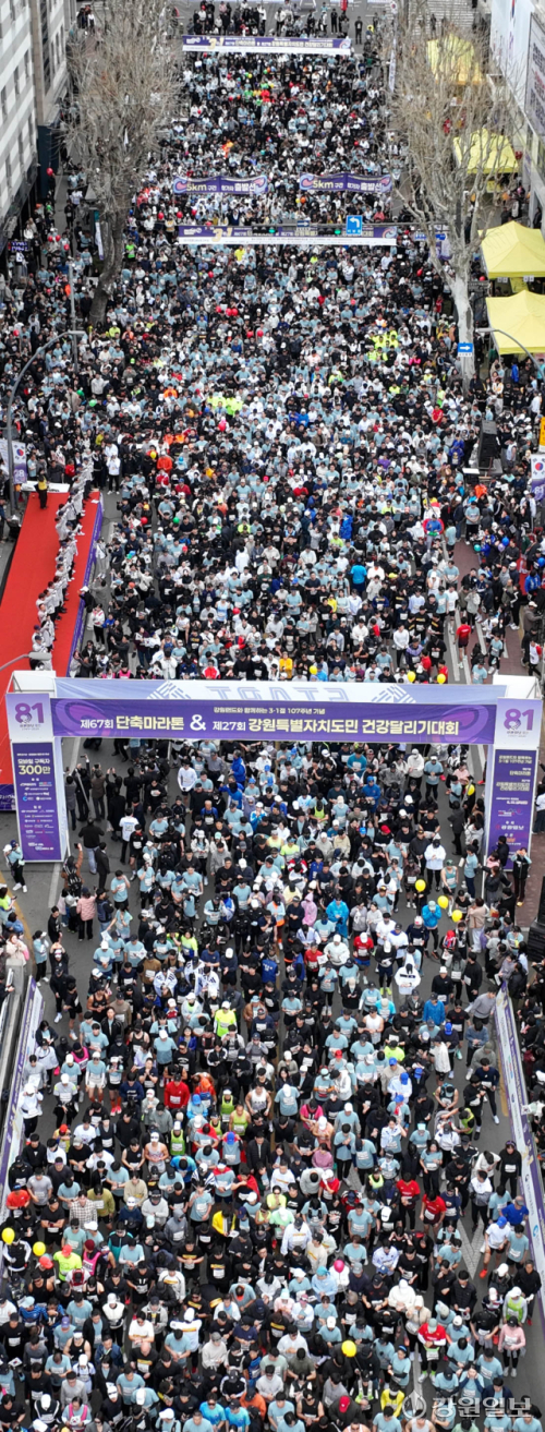 강원일보 창간 81주년과 광복 81주년을 기념하는 '강원랜드와 함께하는 2026 3·1절 107주년 기념 제67회 단축마라톤 및 제27회 강원특별자치도민 건강달리기대회'가 1일 도내 18개 시·군에서 5만 여명이 참여한 가운데 열렸다.