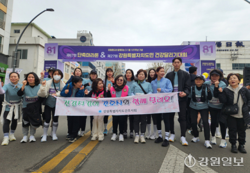 강원특별자치도간호사회는 ‘건강지킴이 간호사와 함께 달려요’ 현수막을 펼치고 건강달리기대회에 단체 참여했다. 지난해에 이어 올해도 도민들에게 간호의 가치를 알리고 공감대를 형성했다. 이날 시총에 나선 김명희 강원도간호사회장도 회원들과 만세삼창을 하고 각각 5㎞, 10㎞ 대회에 참여했다.