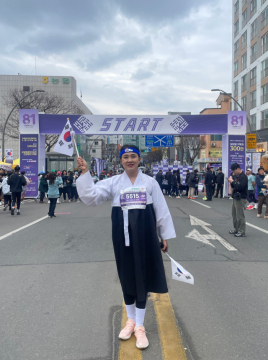 나유경 춘천시의원은 3·1절을 기념해 유관순 열사 복장을 입고 건강달리기 대회에 참가해 만세운동을 재현해 참가자들의 시선을 사로잡았다. 나유경 의원은 “3·1절을 기념해 독립열사들의 헌신을 되새기고자 유관순 열사의 한복을 준비했다”며 “달리기를 통해 순국선열들에 대한 감사의 마음을 다시 한 번 되새기는 계기가 됐다”고 존경을 표했다.