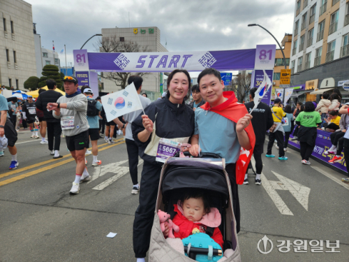 건강달리기대회 5㎞에 조성현(36)·구나현(36)씨 부부는 2살 딸과 함께 유아차를 이끌고 완주한 뒤 태극기를 펼치며 3·1절을 기념해 눈길을 끌었다. 이들 부부는 처음 마라톤과 건강달리기 대회를 참여해 의미가 남달랐으며 육아 스트레스를 이겨내고 완주할 수 있어 가족에 소중함을 느꼈다고 말했다.