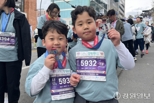 완주 기록 열람 줄을 서있던 함동주(10·만천초), 함우주(8·만천초) 형제는 “오르막 구간이 이어질 때 숨이 차서 힘들었는데 포기하지 않고 완주해 메달을 목에 걸어서 뿌듯하다”고 웃어보였다. 동생 함우주군은 “내년에도 마라톤에 참가해 형보다 빨리 결승선에 통과하고 싶다”고 말했다.
