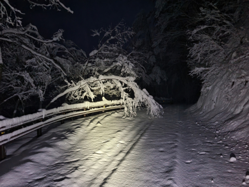 2~3일 강원 산간지역에 많은 눈이 내린 가운데 3일 오전 인제군 북면 백담사로 오르는 길에 소나무들이 눈 무게를 이기지 못하고 쓰러져 있다. 사진=김장헌 강원일보시민기자