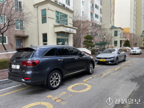 3일 찾은 춘천의 A아파트 단지 주차장. 점심시간이 되자 입주민 차량이 하나둘 들어오며 노란 선으로 표시된 ‘소방차 전용구역’을 3분의 1 이상 가렸다. 같은 날 인근 B아파트 단지는 폭 5m가 채 되지 않는 도로에 SUV와 택시가 줄지어 주차돼 승용차 한 대가 간신히 통과할 정도였다. 화재가 발생할 경우 진압차량 등 대형 차량의 진입은 사실상 어려워 보였다.
