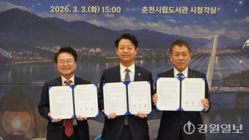 경기 수원, 부천에 이어 지자체로는 3번째 독서국가 선도도시다. 시와 국회 교육위원회, 춘천교육지원청은 3일 시립도서관에서 독서국가 선도도시 춘천 업무협약을 맺었다.