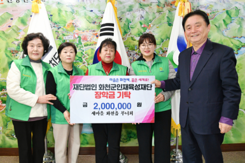 새마을 화천읍 부녀회(회장:김정숙)는 4일 회천군청을 찾아 화천군인재육성재단(이사장:최문순 화천군수)에 장학금 200만원을 기탁했다.