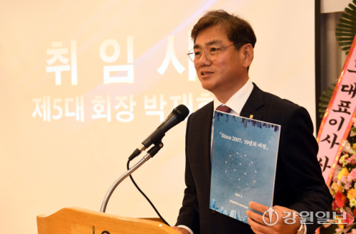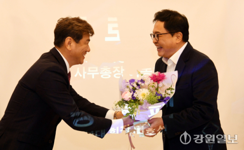 강원경제인국제교류협회 제4대 이호성 회장, 제5대 박재희 회장 이·취임식이 4일 춘천 세종호텔에서 김진태 강원자치도지사, 박진오 강원일보사장, 서종필 강원지방중소벤처기업청장, 서동면 도경제진흥원장, 최성현 강원관광재단 대표이사, 정지창 중소벤처기업진흥공단 강원지역본부장, 박철 중소기업중앙회 강원지역본부장, 강찬호 춘천세무서장,등 기관단체장과 회원들이 참석한 가운데 열렸다.