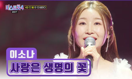 이소나는 시원시원한 고음과 완벽한 가창력으로 시청자들의 눈도장을 찍었다. 오랜 무명 시절을 딛고 미스트롯에 참가한 이소나는 ‘진(眞)소나’라는 이름을 얻으며 큰 인기를 끌었다. 국가무형유산 제57호 경기민요 전수자인 이소나는 20년 넘게 국악에 몰두해 온 인재다.