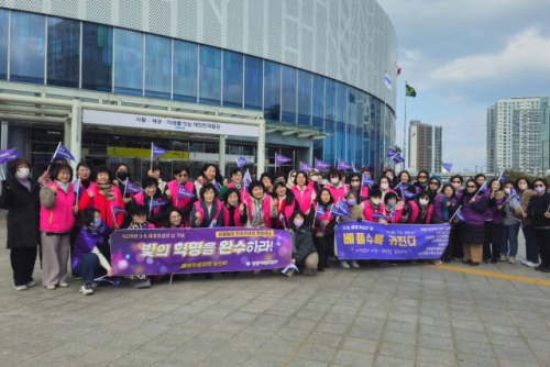 강릉여성의전화는 지난 6일 강릉역에서부터 가두행진을 이어갔다. 행진에는 지역 여성·청소년 권익 보호기관과 시민들이 참여했다. 이들은 정의와 존엄을 상징하는 보랏빛 옷을 맞춰 입고 월화의 거리까지 행진을 이어갔다. 같은 날 춘천 명동 지하상가 일대에서는 마들렌의집 주최로 ‘3·8 세계 여성의 날 기념행사’가 열렸다. 한삶쉼터, 강원이주여성상담소, 강원서부해바라기센터, 춘천길잡이의집, 여성가족인권상담센터 한삶, 여성긴급전화1366 강원센터 등 지역 여성단체가 함께 마련한 행사는 118주년 세계 여성의 날 공식 주제인 ‘베풀수록 커진다(Give To Gain)’를 슬로건으로 이어졌다.