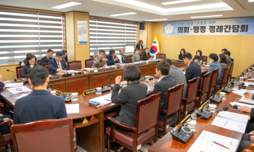 고성군의회(의장:용광열)는 10일 의회 소회의실에서 용광열 고성군의장과 함명준 고성군수 등이 참석한 가운데 3월 의회·행정 정례간담회를 개최했다. 이날 간담회에서는 군정 주요 업무 추진사항 청취와 의정 활동에 대한 협의 등이 진행됐다.
