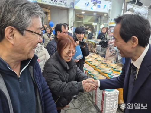 우 후보는 이어 동해 중앙시장과 삼척 중앙시장을 차례로 찾았다. 12~13일에는 KIST 강릉 분원 천연물연구소, 양양 웨이브웍스, 서피비치, 속초 일대를 방문하는 ‘영동권 현장 정책 투어’를 이어간다. 지방선거까지 80여일 남은 가운데 우 후보는 험지로 분류되는 영동권 공략에 공을 들일 것으로 보인다. 이번에 찾는 동해·삼척·강릉·속초·양양은 2022년 지방선거 뿐 아니라 2024년 총선과 2025년 대선에서도 모두 국민의힘 후보 득표율이 높았다.