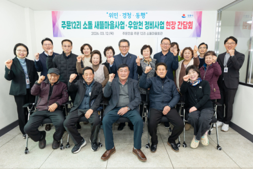 강릉시는 지난 12일 주문12리 소돌마을회관에서 김홍규 강릉시장, 지복규 주문12리 새뜰마을운영위원장, 김천일 노인회장, 홍옥분 부녀회장을 비롯한 마을 주민들이 참석한 가운데 ‘소돌새뜰마을 및 우암천 정비 사업 현장소통 간담회’를 개최했다.
