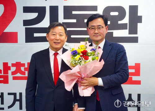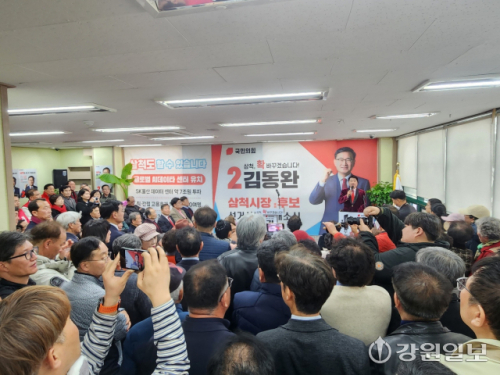 김동완(국민의힘) 삼척시장 예비후보 선거사무실 개소식이 지난 13일 삼척시 남양동 농협중앙회 맞은 편 사무실에서 당원, 각계 인사, 시민 등이 참석한 가운데 열렸다.