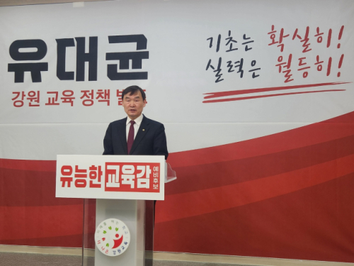 유대균 예비후보는 17일 도교육청 브리핑룸에서 기자회견을 열고 ‘AI 디지털 미래교육 5대 핵심 추진과제’를 발표하며 “강원의 AI 디지털 교육을 대한민국의 표준으로 만들고 세계 교육의 기준이 될 수 있도록 하겠다”고 밝혔다.