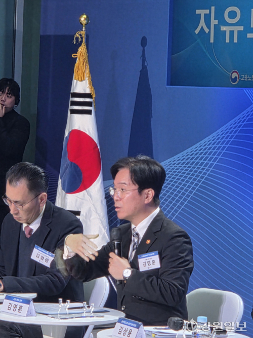 고용노동부는 이날 가톨릭관동대 마리아홀에서 ‘청년, 건설의 내일을 짓다’를 주제로 타운홀 미팅을 개최했다. 김영훈 장관을 비롯해 김상용 고용노동부 강원지청장, 문세원 고용노동부 강릉지청장 등이 참석했으며, 청년, 노동계, 산업계, 전문가 등 4개 그룹으로 나뉜 참석자들과 다양한 의견을 나눴다.